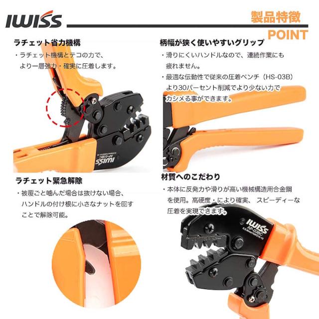 IWISS ラチェット式 ギボシ端子 ダイナミック 同時圧着ペンチ 省力化タイプ 0.5-6.0sq対応 AP-03BC