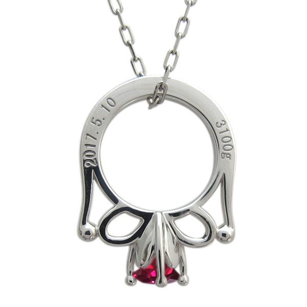 7月誕生石ルビーを使用したプラチナ製のベビーリング(ネックレス)です。