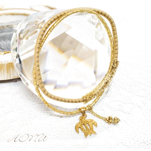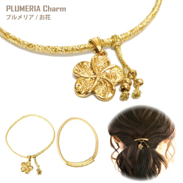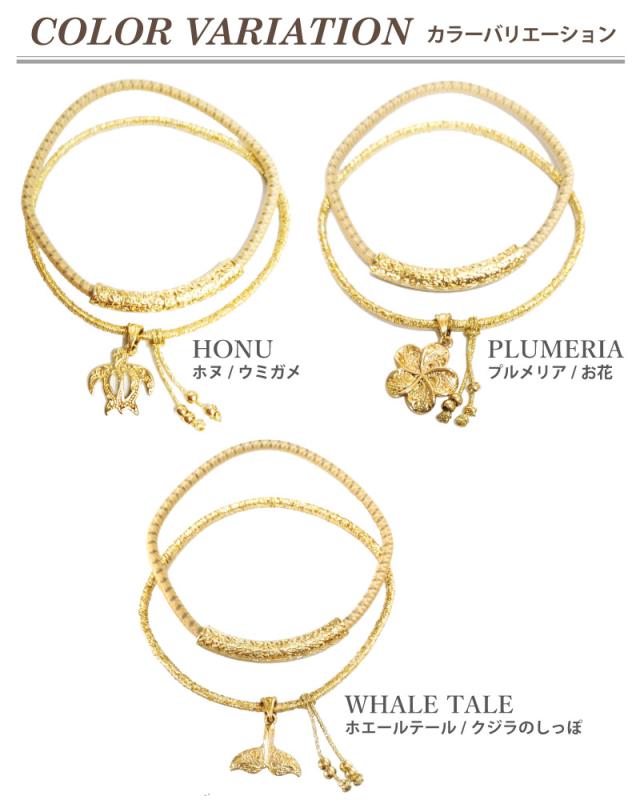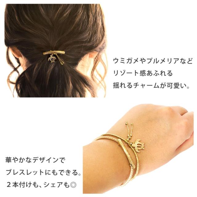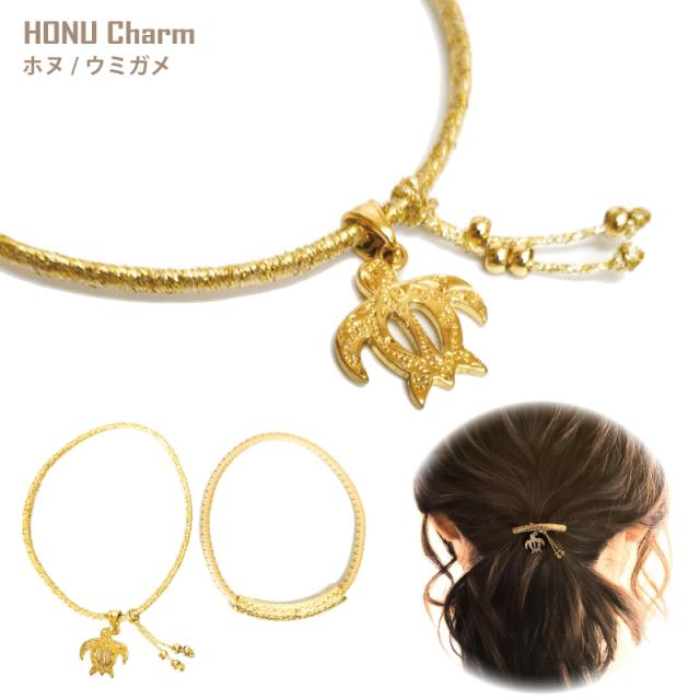揺れるチャームはホヌ(ウミガメ)やプルメリアなど、ハワイの人々に愛されているお馴染みのデザイン。