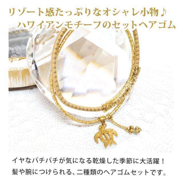 ヘアゴム 静電気軽減 ハワイアン モチーフ 2本セット メール便は送料無料 髪飾り おしゃれ パチパチしない ウミガメ プルメリア クジラ チャーム付き ha-466 ノンパチ レディース ヘアアクセ 静電気 除去 ハワイ アロハ 亀 お花 鯨 可愛い リゾート