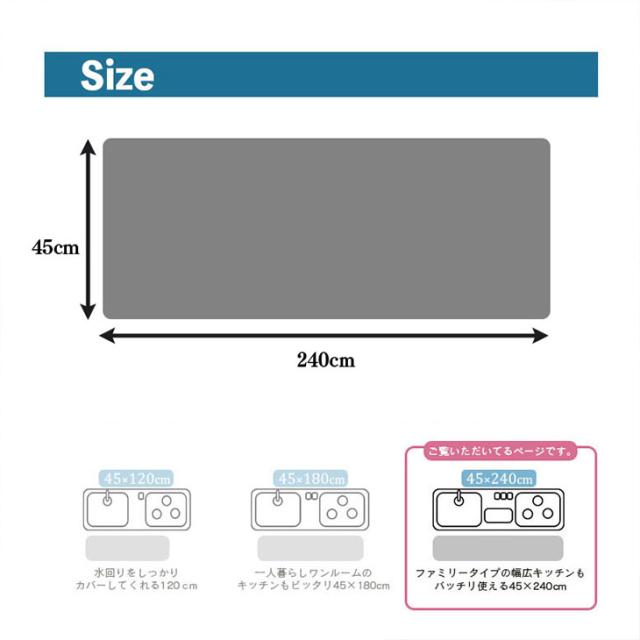PVCキッチンマット 抗菌 抗カビ 45×240cm 西海岸 カーペット 厚手 台所 キッチン 北欧 秋 冬