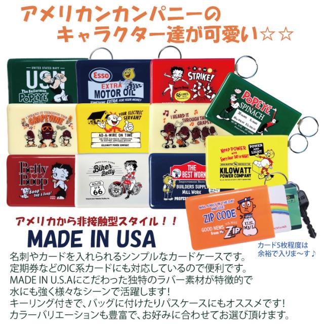 【メール便対応】カードキーパー カード入れ ICカード入れ 定期入れ キャラクター アメリカン アメリカン雑貨 12種類 非接触 通勤 通学 MADE IN USA ビンテージ ラバー素材【ESSO レディキロワット CaliforniaRaisins Mr.ZIP BETTY POPEYE 】┃