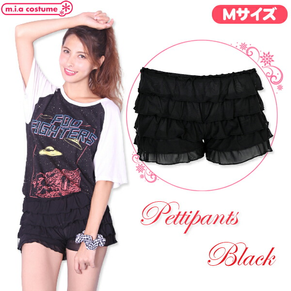 1255F▲ML【送料無料・即納】 ペチコートパンツ ブラック サイズ:M ドロワーズ ショートパンツ ペチパンツ 見せパン