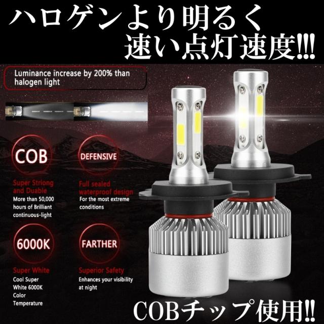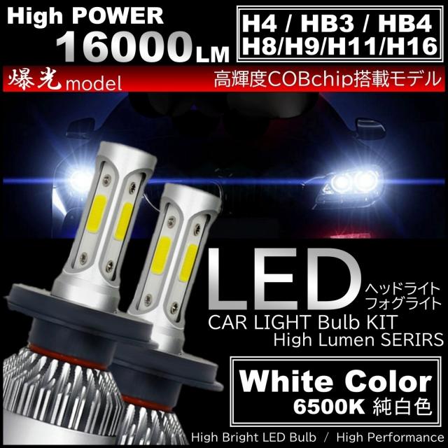 爆光 LEDヘッドライト LEDフォグランプ H4/H8/H9/H11/H16/HB3/HB4 16000LM オールインワン COBchip 6500K ホワイト