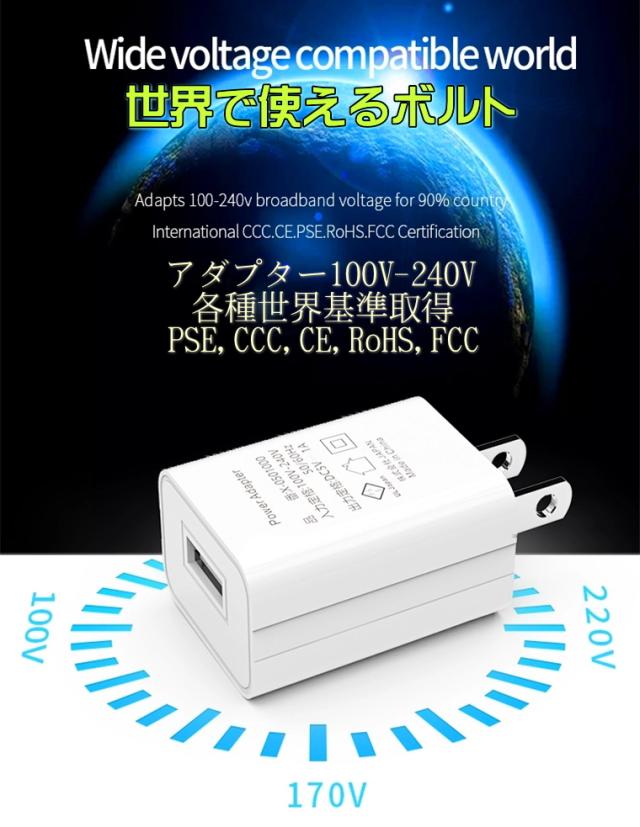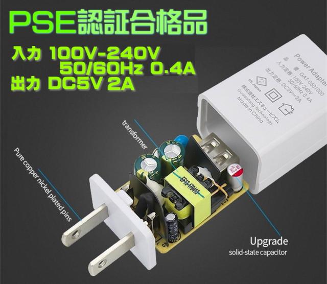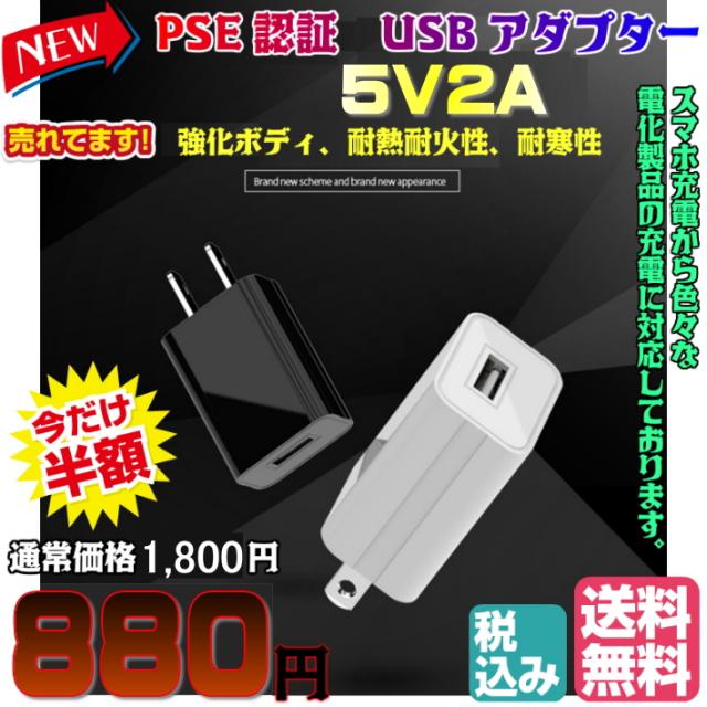 【送料無料・税込み】PSE 認証 マーク 対応 USB アダプター 5V2A 2000mA 100V 240V 出力 コンセント 充電 器 安全 耐熱 耐火 5v1a adapter outlet plug ポート i-phone android スマホ 安い 売れてる 人気 ランキング おすすめ