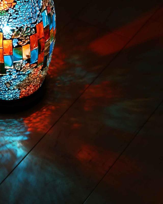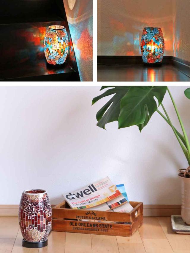 モザイクガラスを通して、幻想的な灯りが壁や床に映し出され、ガラスを透して生まれる美しい光の模様を楽しめます。お部屋の雰囲気を変え、うっとりするような異空間を演出します。