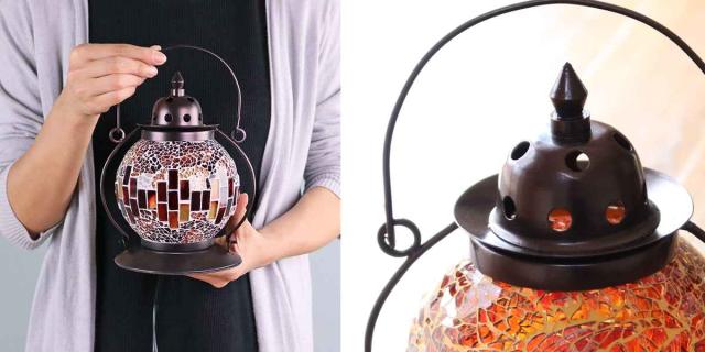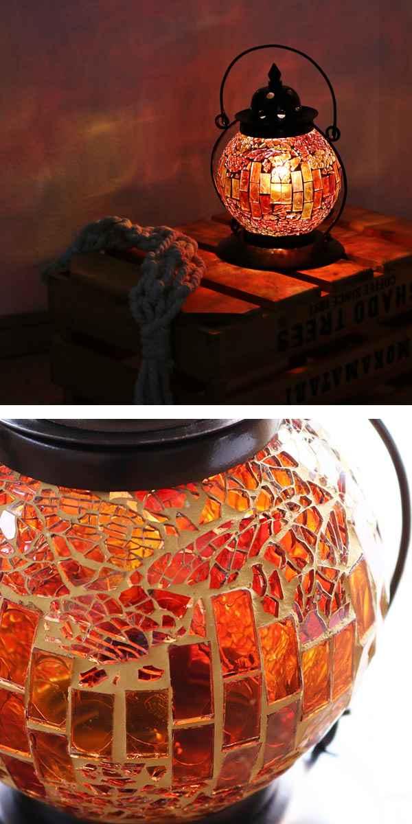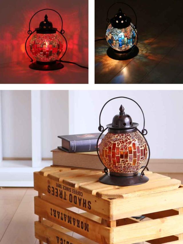 モザイク模様が美しくお洒落な、ランタン型の卓上ライト