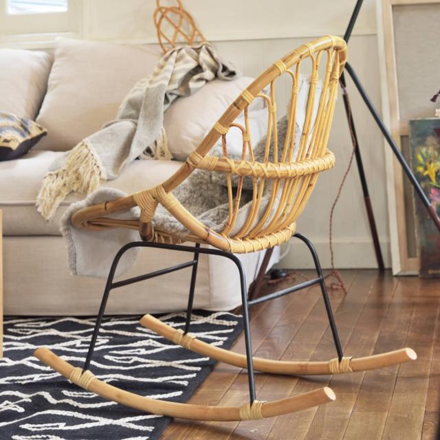 ゆったりと過ごす時間に、丈夫なラタン製ロッキングチェア