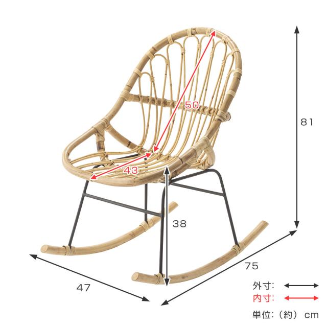 籐 ロッキングチェア アイアン脚 幅47cm ( ラタン製 チェア 椅子 チェアー イス 1人掛け リラックスチェア パーソナルチェア 完成品 籐家具 揺れる ロッキングチェアー リビング リラックス 一人掛け ソファ おしゃれ )