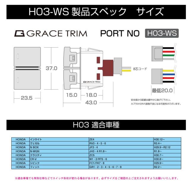 | 商品名 | ホンダ車系 H03タイプ スイッチホール 増設用 Wポートスイッチ 全6タイプ |