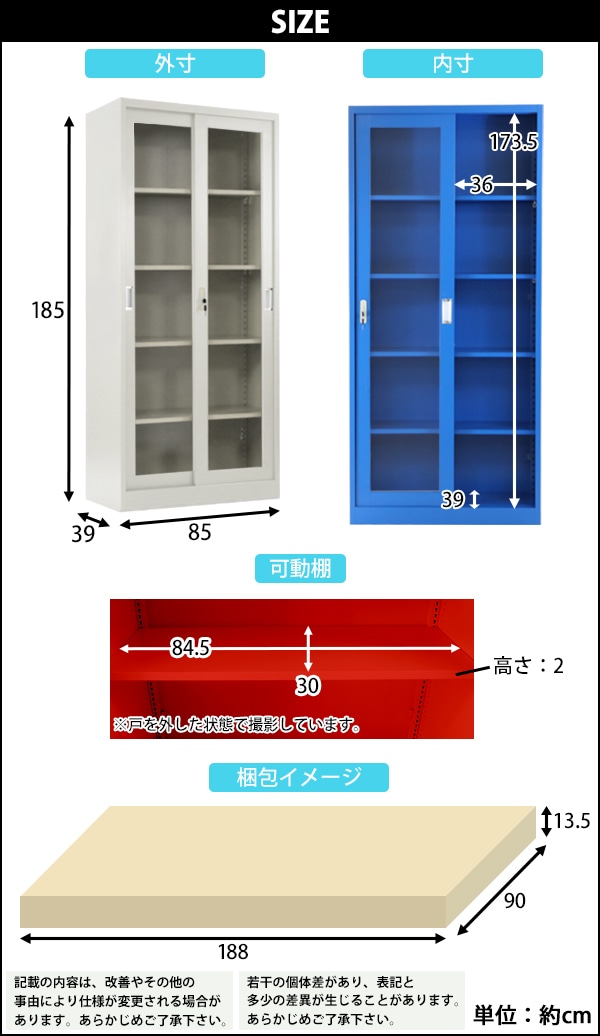 | 外寸 | 約W85×約D39×約H185(cm)(鍵は、合計2(内スペアキー1)個付属します。) |