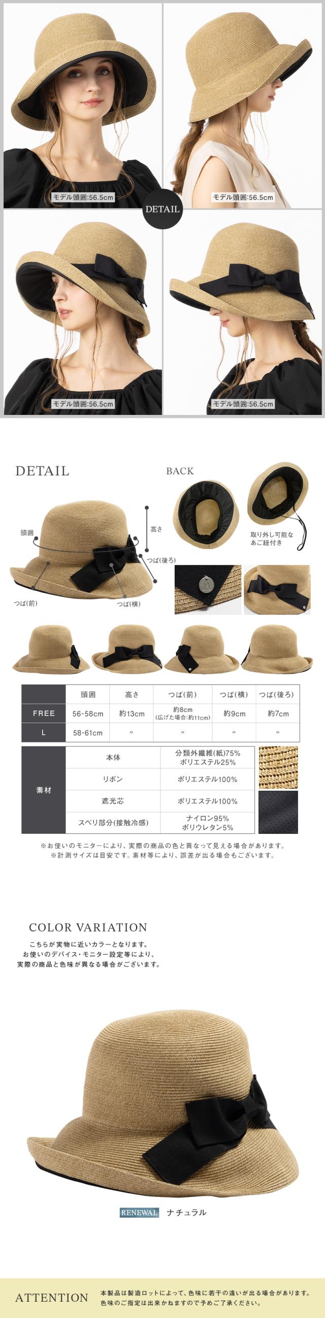 | ・高さはモデル着用時の高さを記載しています。 ・頭囲・高さ・つばのサイズ表記は、5mm前後の誤差が生じる場合があります。計測サイズは目安としてお考えください。 ・遮光生地の厚さには多少の差異があり、中にはシャカシャカと音がする場合があります。 ・お取り扱いの前に品質ネームタグの記載内容をご確認ください。 ・ご覧いただくモニターの発色具合によって実物と色が異なって見える場合があります。 ・商品単体の画像が実際の商品と色合いが近いものとなっておりますので、ご参照ください。 ・同商品でも、染色過程で色味が多少変わる場合があります。 ・後頭部のサイズ調節テープで微調節が可能です。 ・取り外し可能なあご紐付きです。 |