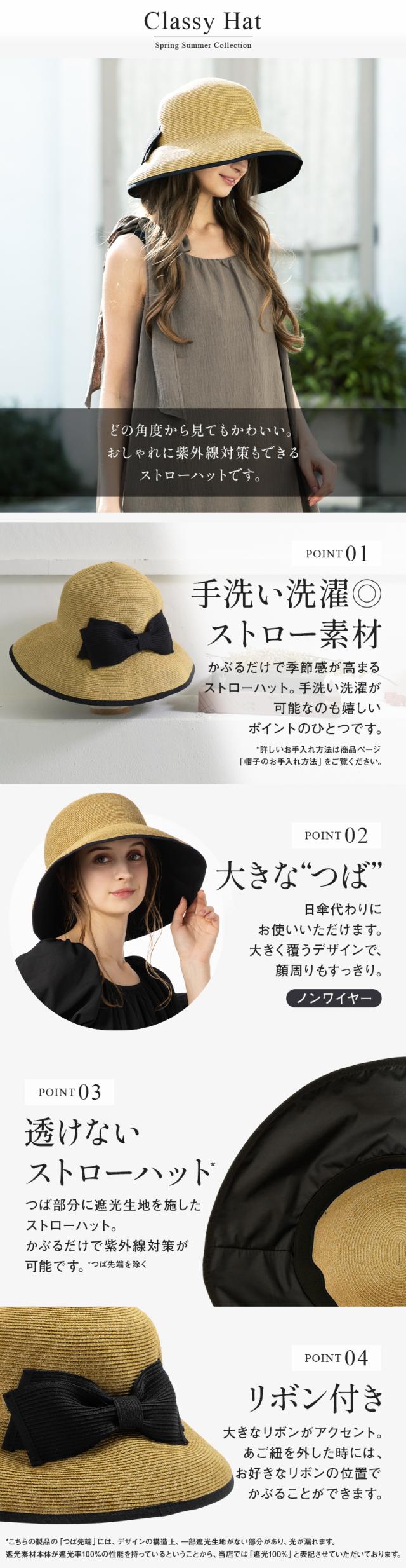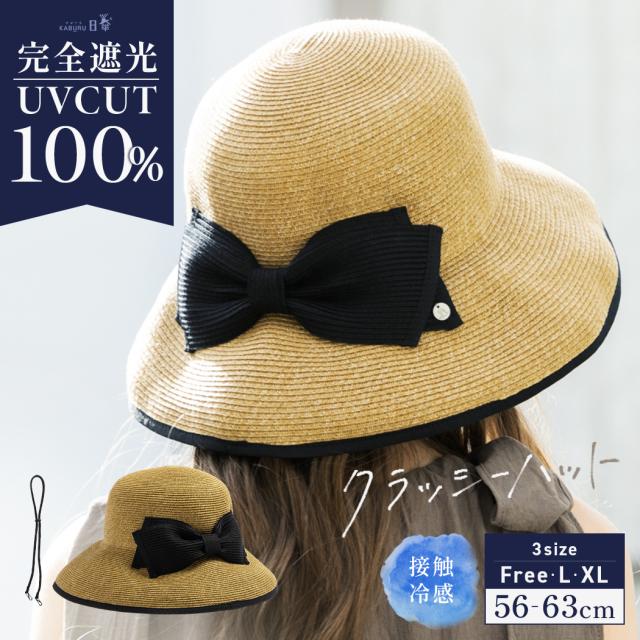 クラッシーハット(066) 帽子 レディース 大きいサイズ 完全遮光 遮光100%カット UVカット つば広 折りたたみ 自転車 飛ばない 日よけ かぶーる日傘(かぶる日傘) 春 夏 母の日 UV 帽子 麦わら あご紐 56-63cm 小顔効果 自転車でもあご紐で飛ばない