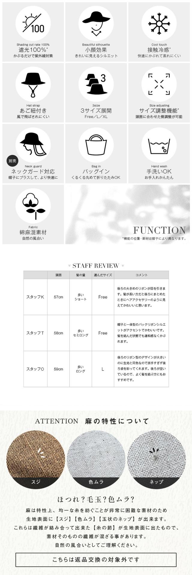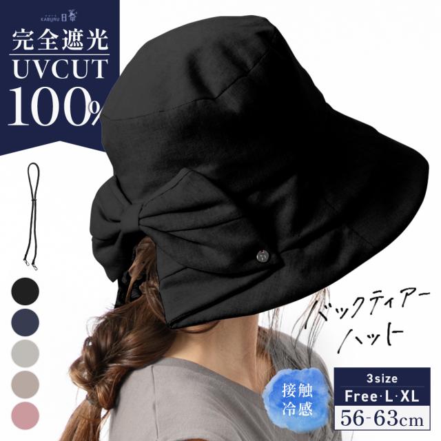 綿麻バックティアーハット(061) 帽子 レディース 大きいサイズ 完全遮光 遮光100%カット UVカット つば広 折りたたみ 自転車 飛ばない 日よけ かぶーる日傘 春 夏 春夏 母の日 あご紐 56-63cm 小顔効果 自転車でもあご紐で飛ばない