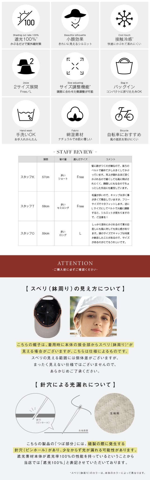 | ・高さはモデル着用時の高さを記載しています。 ・頭囲・高さ・つばのサイズ表記は、5mm前後の誤差が生じる場合があります。計測サイズは目安としてお考えください。 ・お取り扱いの前に品質ネームタグの記載内容をご確認ください。 ・ご覧いただくモニターの発色具合によって実物と色が異なって見える場合があります。 ・商品単体の画像が実際の商品と色合いが近いものとなっておりますので、ご参照ください。 ・同商品でも、染色過程で色味が多少変わる場合があります。 ・後頭部のアジャスターで微調節が可能です。 |