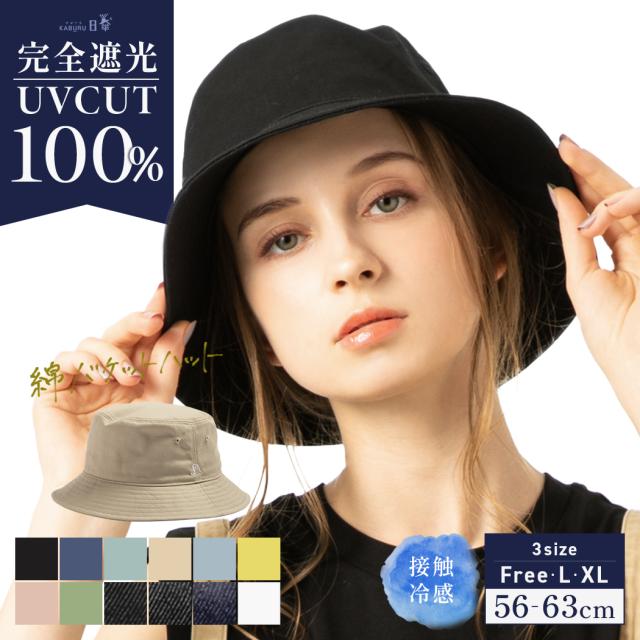 綿バケットハット(056-1) 帽子 レディース 大きいサイズ バケットハット バケハ 完全遮光 遮光100%カット UVカット つば広 折りたたみ 日よけ かぶーる日傘(かぶる日傘) 春 夏 春夏 母の日