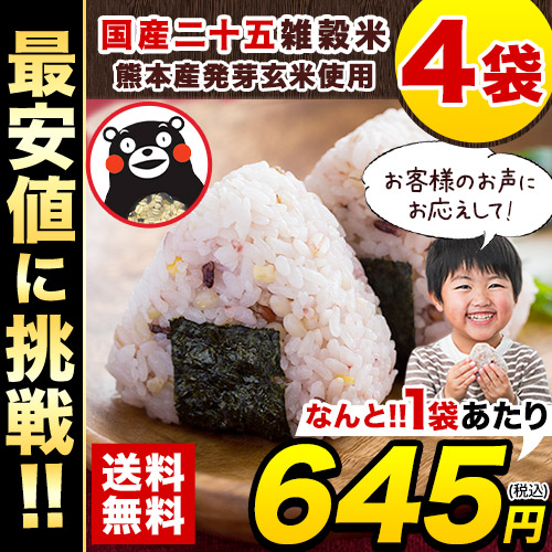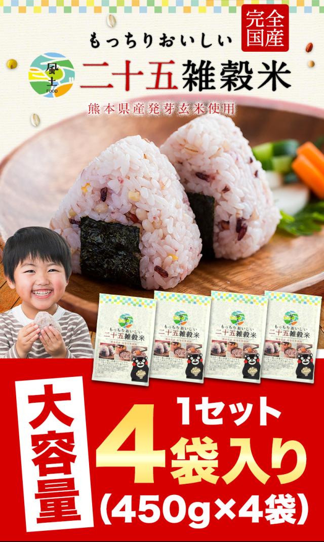 雑穀米 4袋セット 450g × 4袋 国産 雑穀 米 お米 お試し 非常食 保存食 二十五雑穀米 3-7営業日以内出荷(土日祝除) くまモン 大麦 玄米 もち麦 健康 お米 オススメ 食べ比べ セット 雑穀 産地直送 ギフト 米 雑穀米 くまもと風土