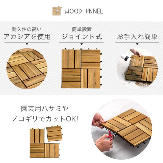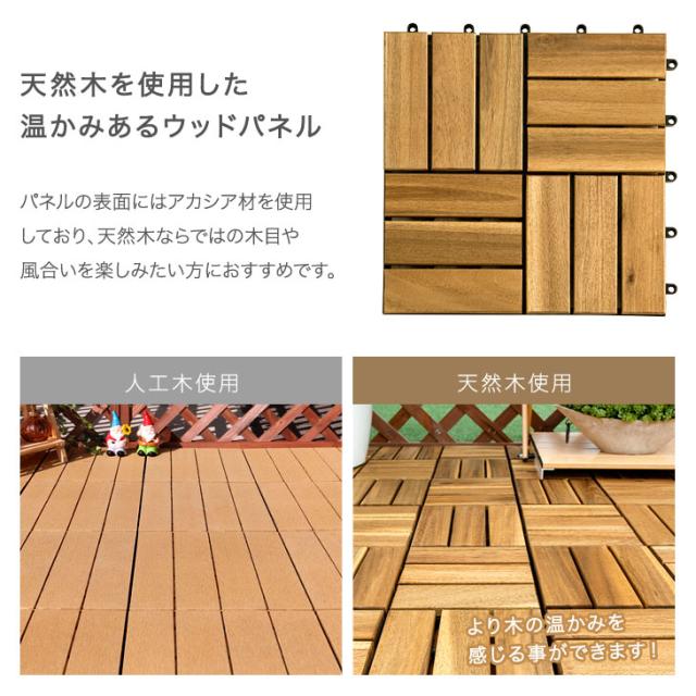アカシア天然木 ウッドパネル 108枚セット 高耐久 30×30cm ジョイント式 ウッドタイル ウッド ウッドデッキパネル パネルデッキ フロアデッキ パネル ガーデン ガーデニング DIY