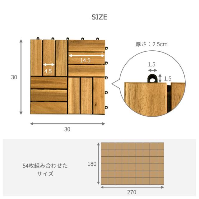 アカシア 天然木 ウッドデッキ 108枚 セット 高耐久 30×30cm 設置簡単 ジョイント式 木製タイル ウッド タイル ジョイントタイル ウッドパネル 木 天然木 正方形 屋上 バルコニー