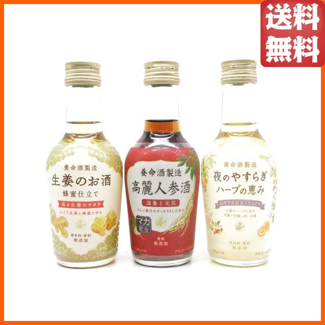 【飲み比べ3本セット】【ミニサイズ】 養命酒製造 (生姜のお酒 / 夜のやすらぎ ハーブの恵み / 高麗人参酒) 200ml×3本セット