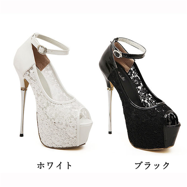 パンプス レディース 靴 ハイヒール ピンヒール ヒール16cm オープントゥ 総レース 上品 大人 おしゃれ 披露宴 パーティ 結婚式 謝恩会 美脚 スタイルアップ 脚長効果di834c0c0c9