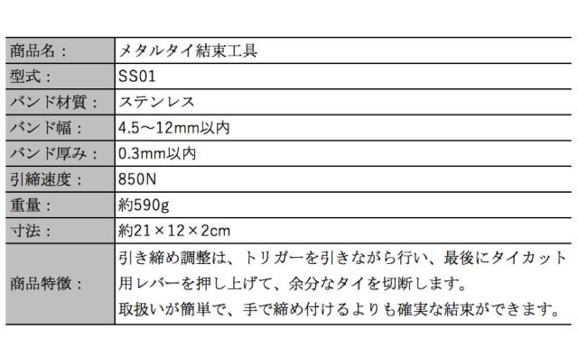 ステンレスバンド、メタルタイの引き締めと切断を行う工具SS-01です。