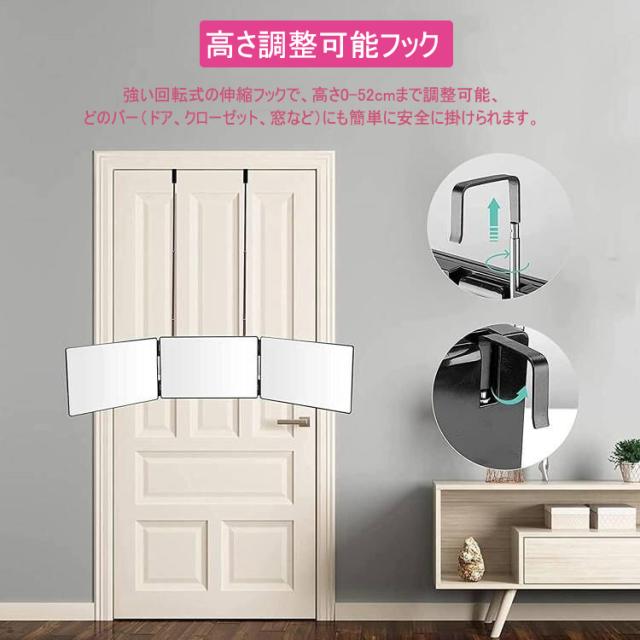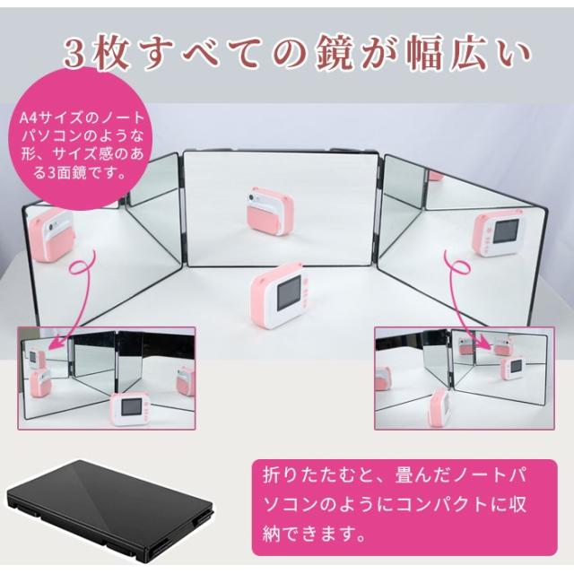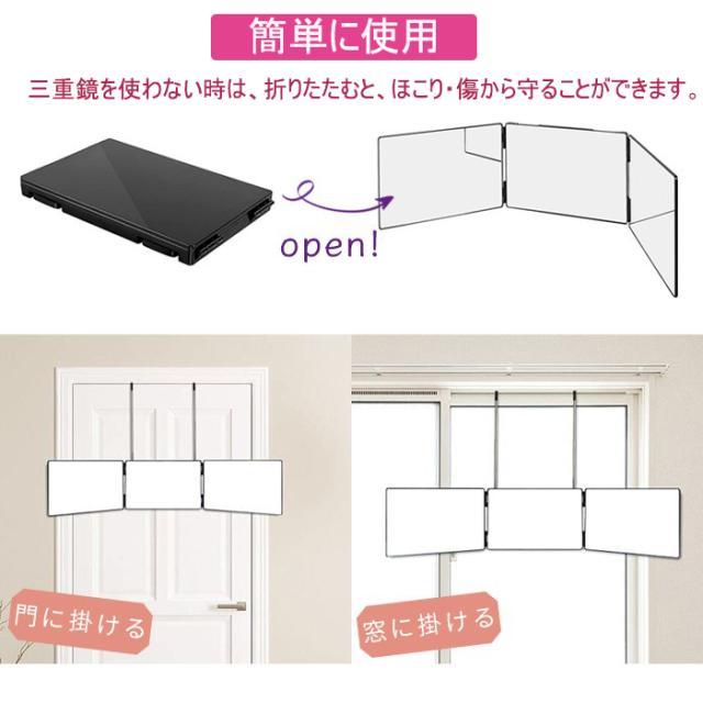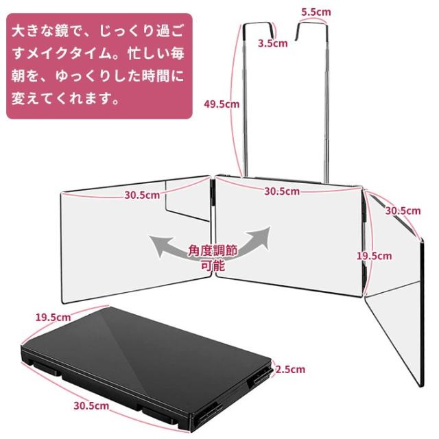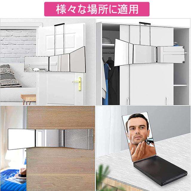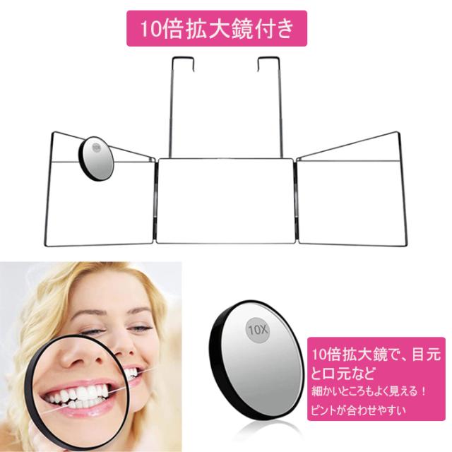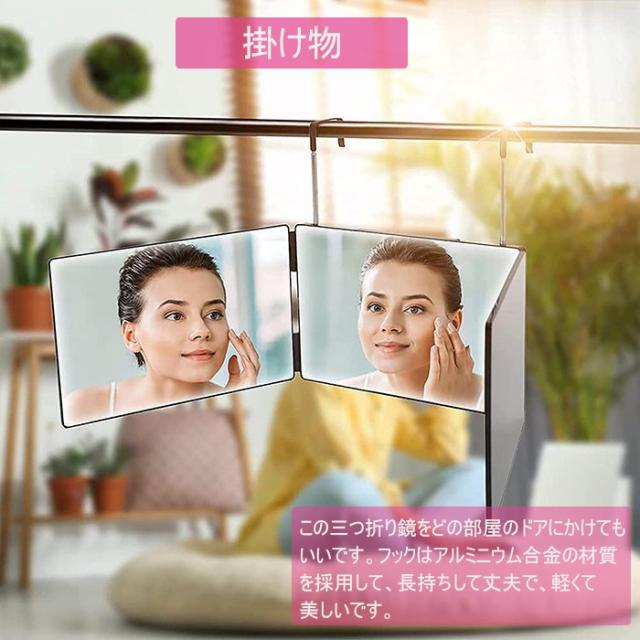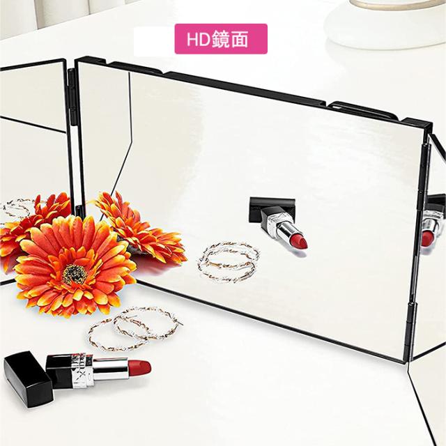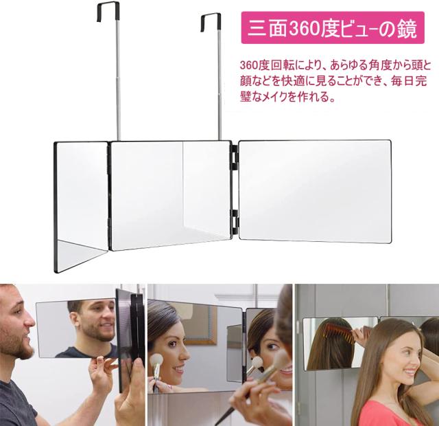 角度が自由:自分好みの角度に調節可能。平面鏡と違って、三面鏡はお顔の正面だけでなく、横顔や顔全体をしっかり見えます。自分では見えない場所もチェック。また、毎日メイクしている時、自然な見かけが現すことができます。薄毛のチェック、白髪のチェックなどにも便利です。