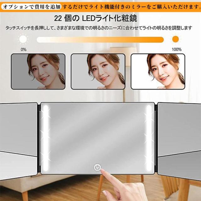 「クーポン配布中」卓上ミラー 女優ミラー 360°ミラー 立体三面鏡 壁掛け 三面鏡 化粧鏡 折りたたみ式 セルフカット メックミラー ライト付きミラー LEDミラー 高さ調節 角度調整 10倍拡大鏡付き 角度調整 横顔チェック 母の日 父の日 クリスマス プレゼント