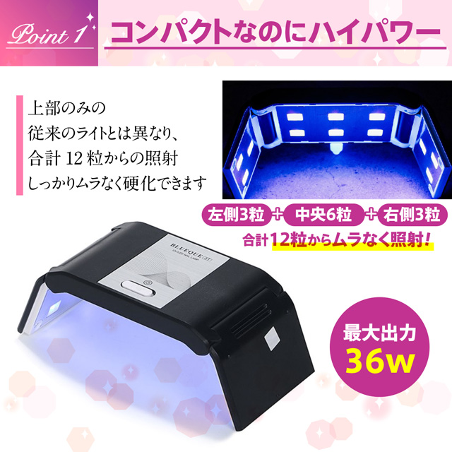 【36wハイパワー】コンパクト設計なのに、最新のUV・LEDライトが12個配置されています。 ジェルネイルやUVレジンがどちらも素早く硬化可能です。