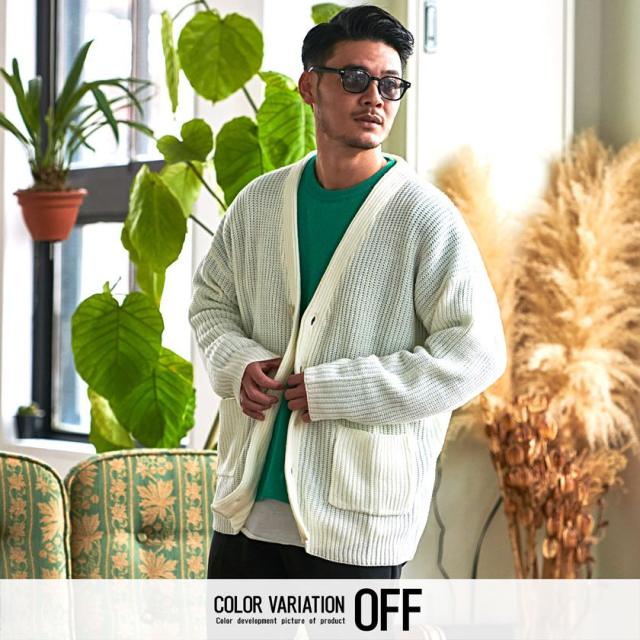 セール SALE カーディガン メンズ 長袖 トップス 羽織り 7G ニット セーター Vネック 単色 無地 シンプル 大きいサイズ ビッグシルエット オーバーサイズ ゆったり ユニセックス レディース オフホワイト ブラック グレージュ 黒 白 M L 春 秋 冬 即日発送 [12708004]