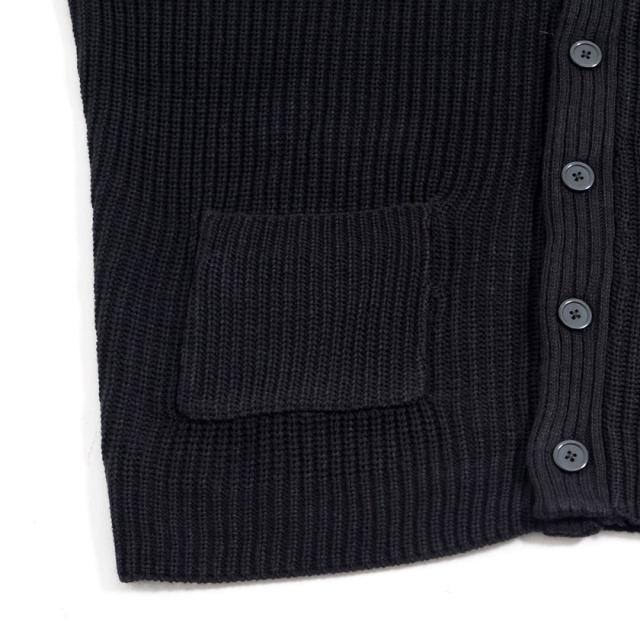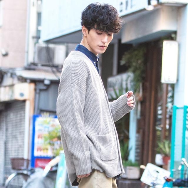 ざっくりとしたローゲージで編み込み立体感と程良いボリュームが特徴の片畦カーディガン。