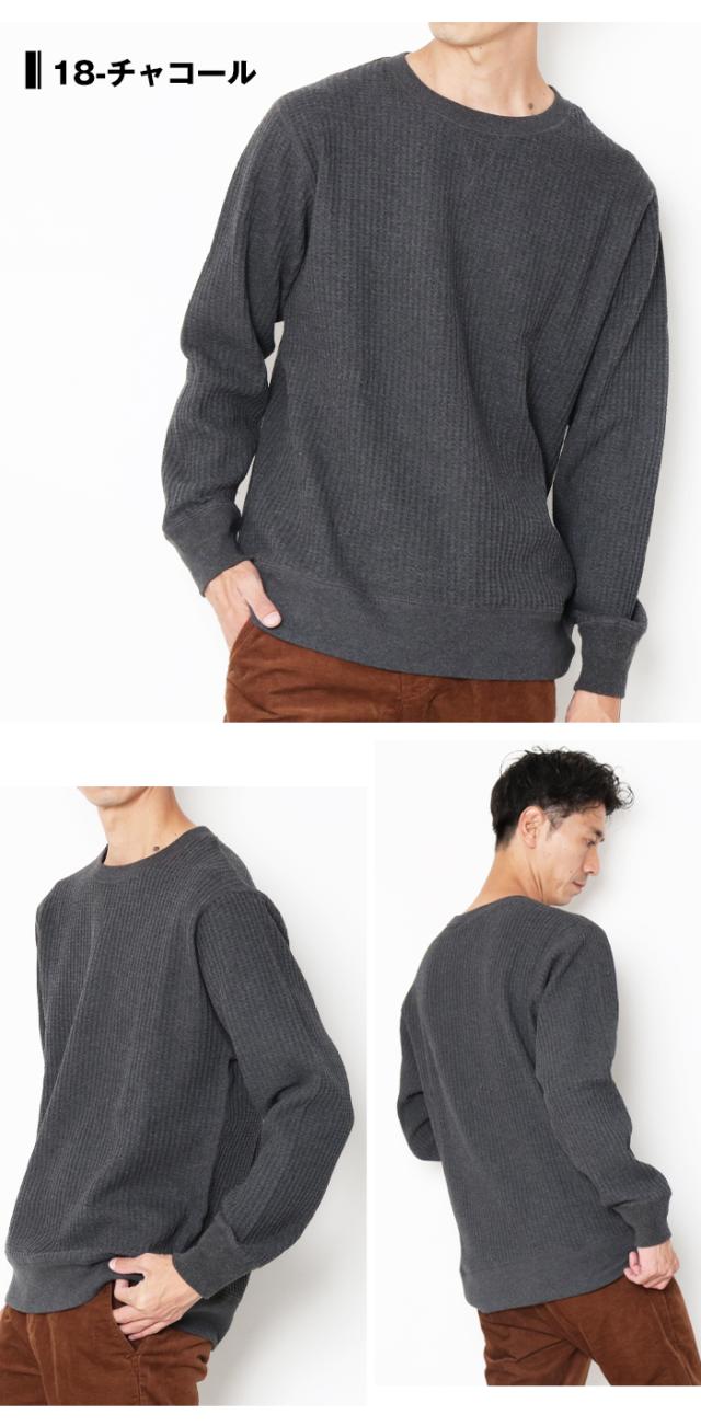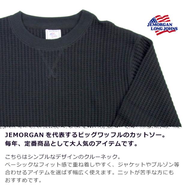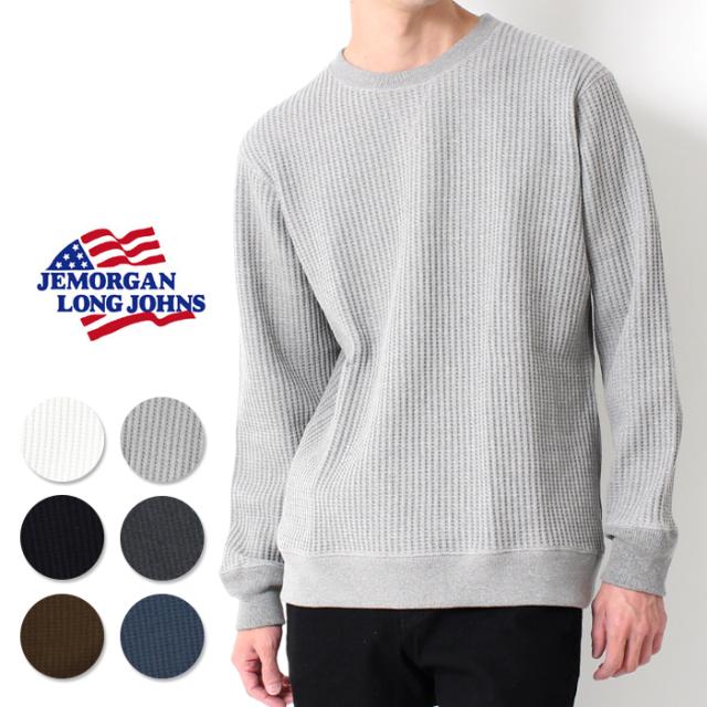 jemorgan ジェーイーモーガン ワッフル サーマル 定番 ベーシック リラックスウェア ブランド 白 黒 ブラック グレー オフホワイト ブラウン ネイビー チャコールグレー クルーネック 袖リブ 長袖 クルー アメカジ 大人カジュアル メンズ きれいめ シンプル 男性 大人 丈夫 頑丈 秋冬 春 おしゃれ タフ インナー カットソー 一枚着