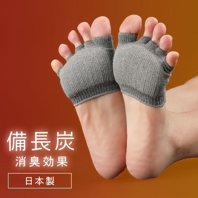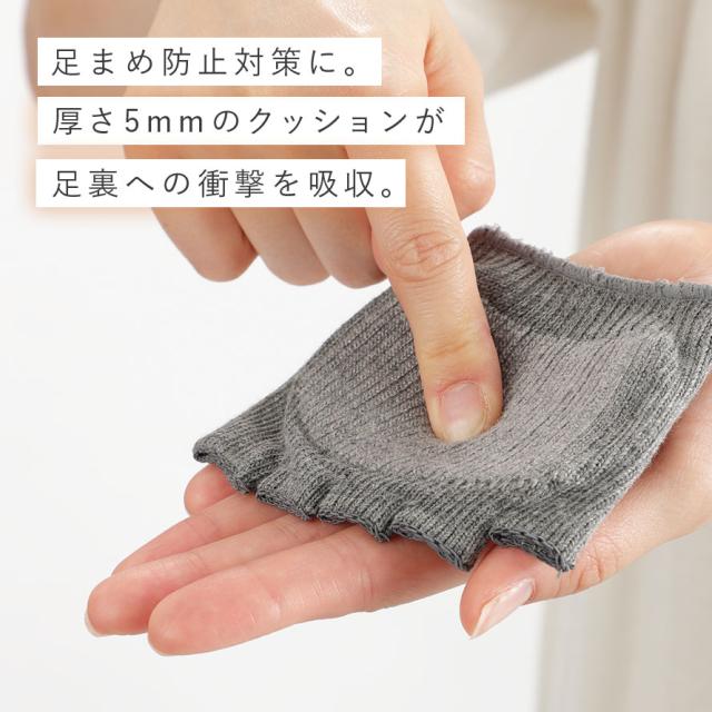 クッションパッド 足まめ防止 フットカバー 5本指 五本指靴下 インナーソックス 重ね履き 備長炭繊維 ハーフソックス つま先なし オープントゥ フットケア 衝撃吸収 消臭 備長炭クッションパッド グレー メール便対応