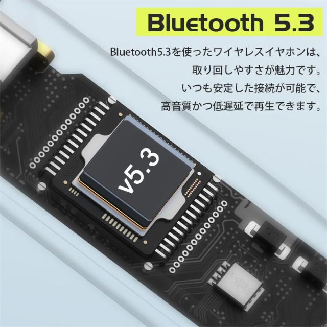 【Bluetooth5.3】最先端なBluetooth5.3を採用しており、データ通信速度がより高速化し、通信範囲も通信容量も旧バージョンの数倍が向上しました。ほかにも、省電力や互換性の拡大などといった性能もアップしました。