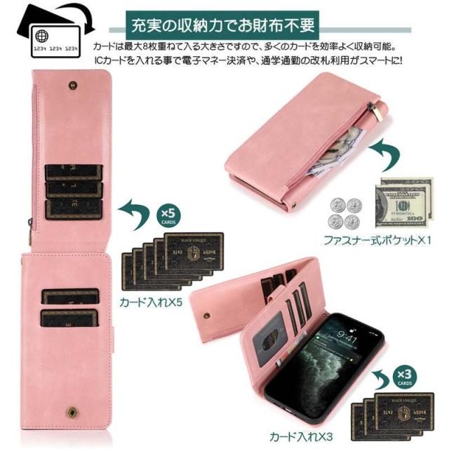 〇 魅力的なファスナー式ポケット付きスマホケースです。
