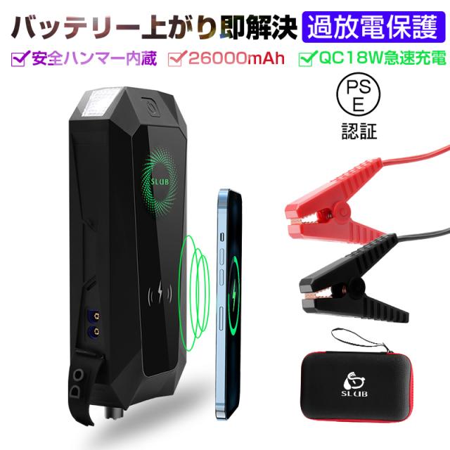 ジャンプスターター 12V車用エンジンスターター 26000mAh ブースターケーブル付き ライト付き iPhone17/16/15充電 防水 ガソリン車 ディーゼル車対応 【PL保険加入済み製品・安心】