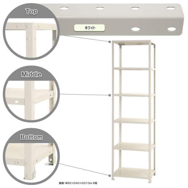 スマートラック 幅60×奥行30×高さ210cm 6段 ホワイト NSTR-734-6 [オフィス家具 スチール棚 スチールラック 業務用 収納棚 収納ラック キタジマ]