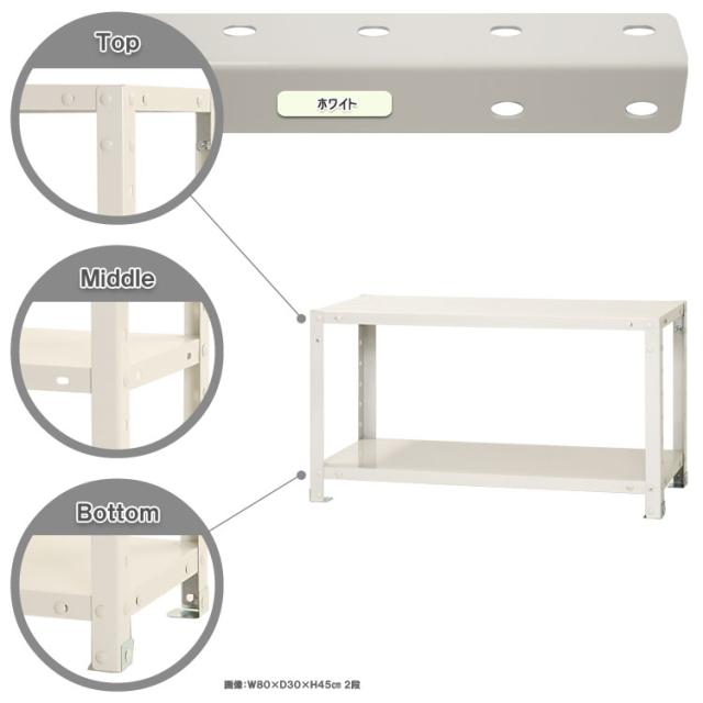 スマートラック 幅80×奥行30×高さ45cm 2段 ホワイト NSTR-054-2 [オフィス家具 スチール棚 スチールラック 業務用 収納棚 収納ラック キタジマ]