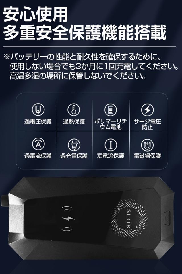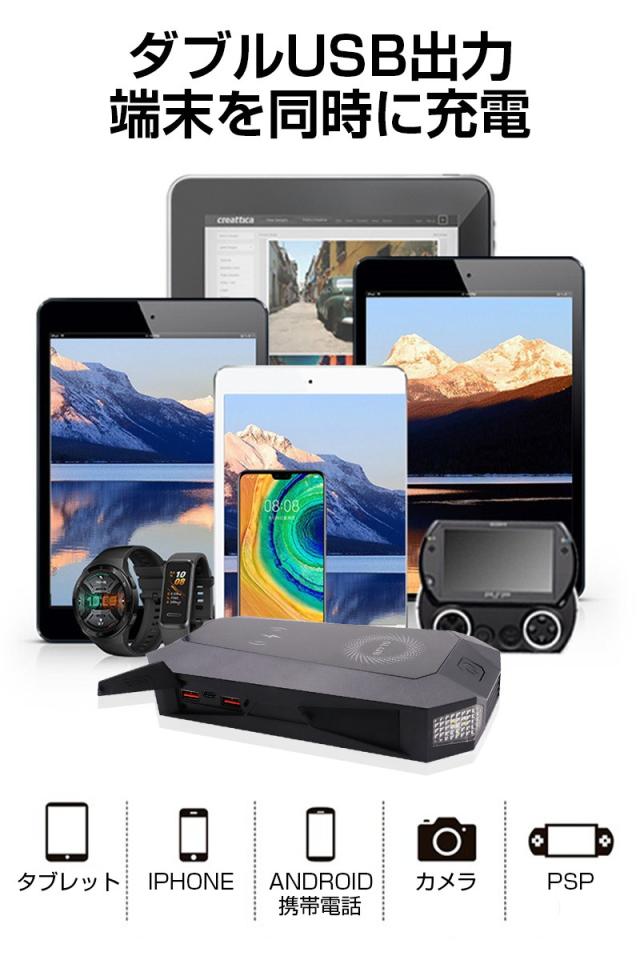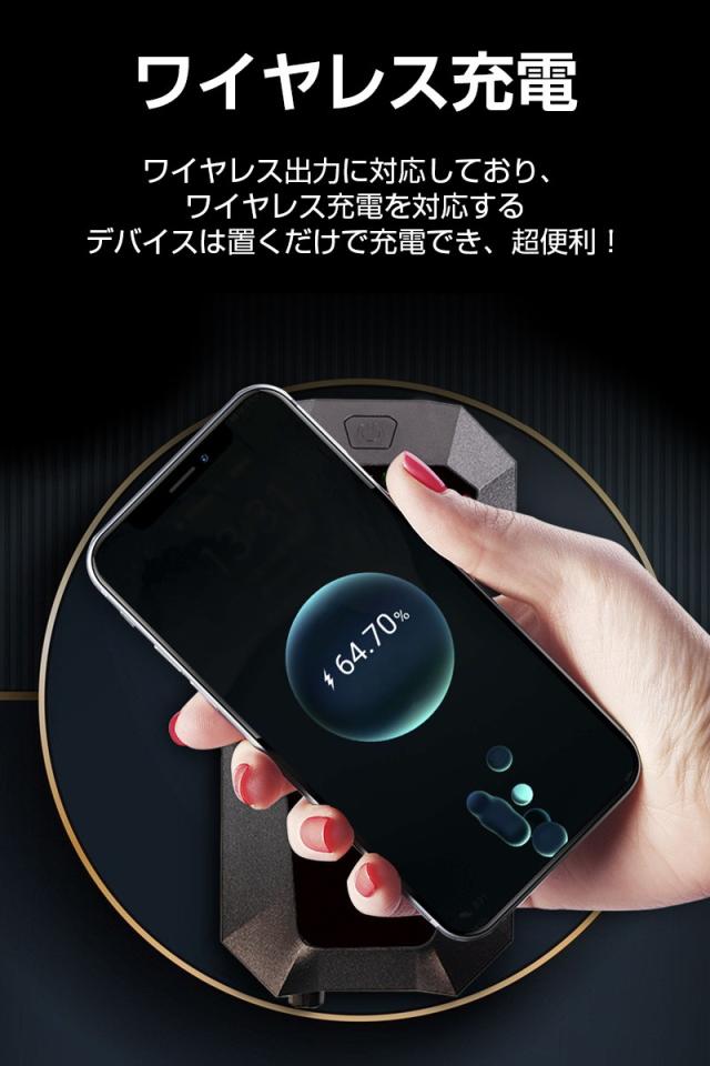 3.26000mAhの大容量電池、車を始動するだけでなく、スマートフォンなどを充電でき、大型・大容量のモバイルバッテリーとしても活用できます。しかも、USB出力とワイヤレス出力に対応しており、ワイヤレス充電を対応するデバイスは置くだけで充電でき、超便利!