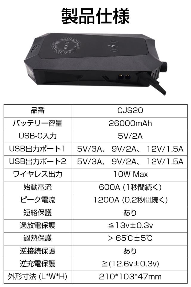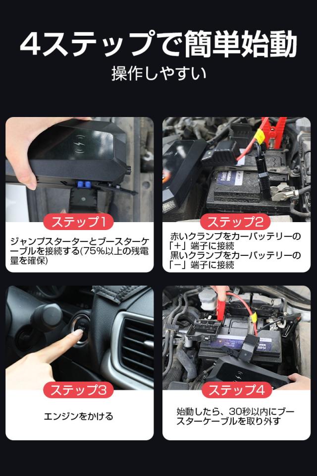 ジャンプスターター 26000mAh 大容量バッテリー ポーリマリチウム電池 ブースターケーブル付き 12V車用エンジンスターター 【PL保険加入済み製品・安心】