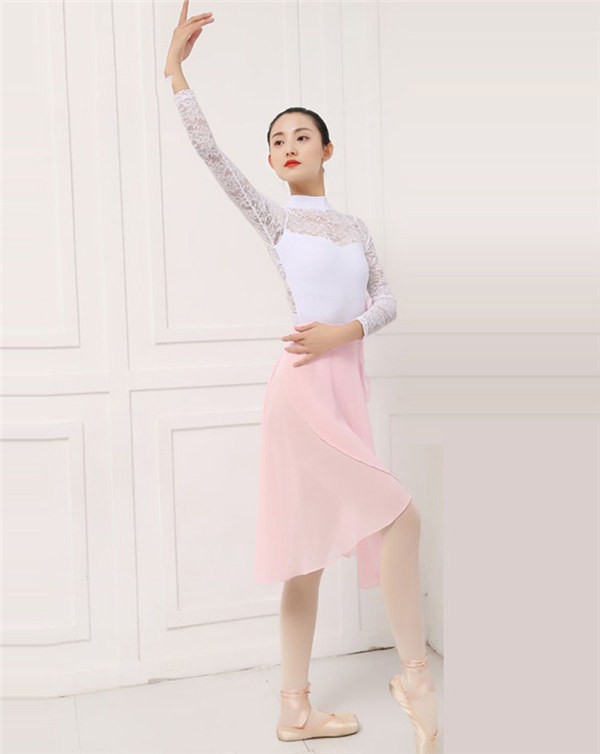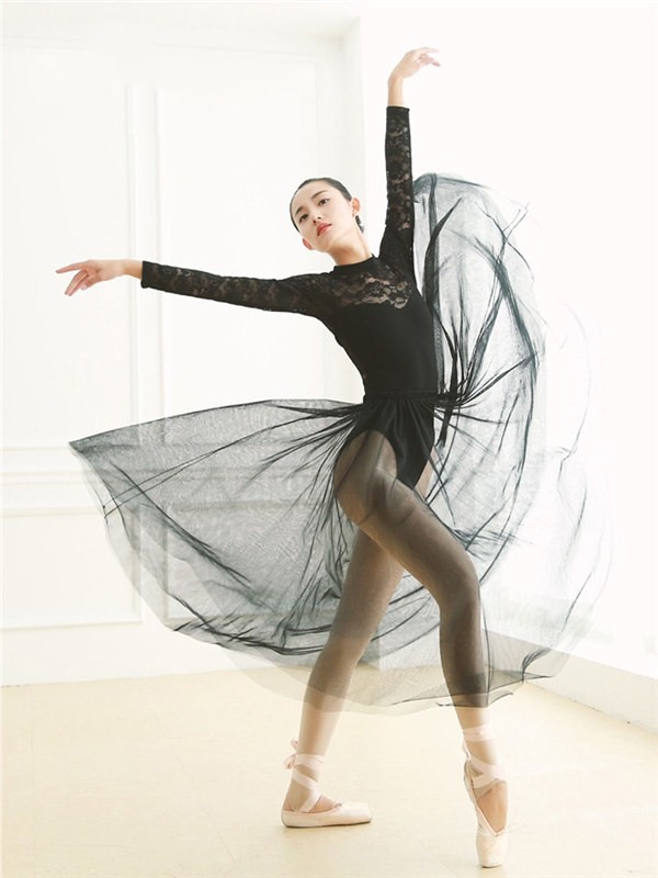 【送料無料】レオタード お洒落 韓国 大人用 バレエ衣装 練習着 演出用 可愛い バレエレオタード 長袖 バレエダンス ダンス服 ダンスウエア コスチューム ラウンドネック ホワイト ブラック パット付き