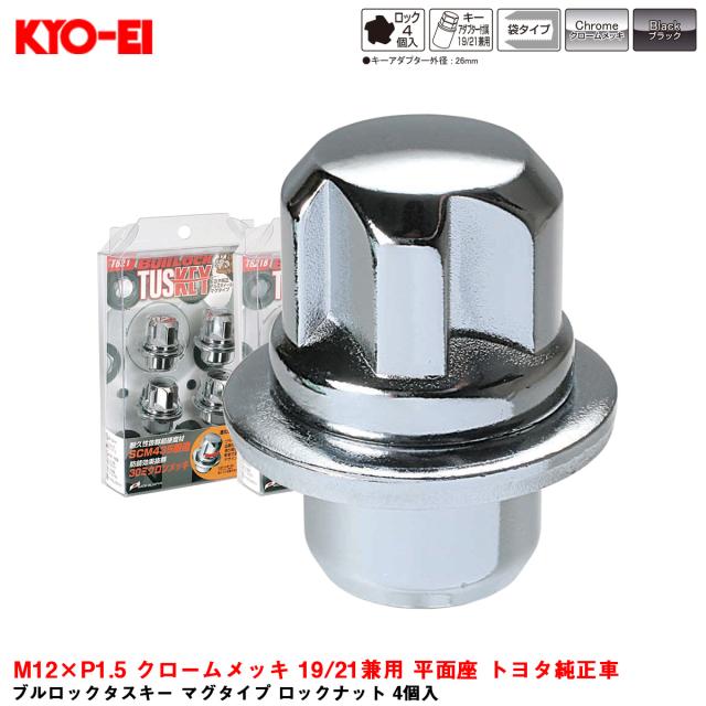 KYO-EI ブルロックタスキー マグタイプ ロックナット 4個入 M12×P1.5 クロームメッキ 19/21兼用 平面座 トヨタ純正車 T621