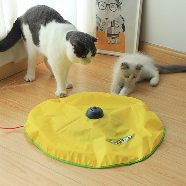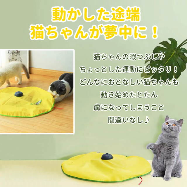 ■カサカサ素材の布の下で動く360°回転式の猫じゃらしが猫の本能、好奇心をくすぐります。