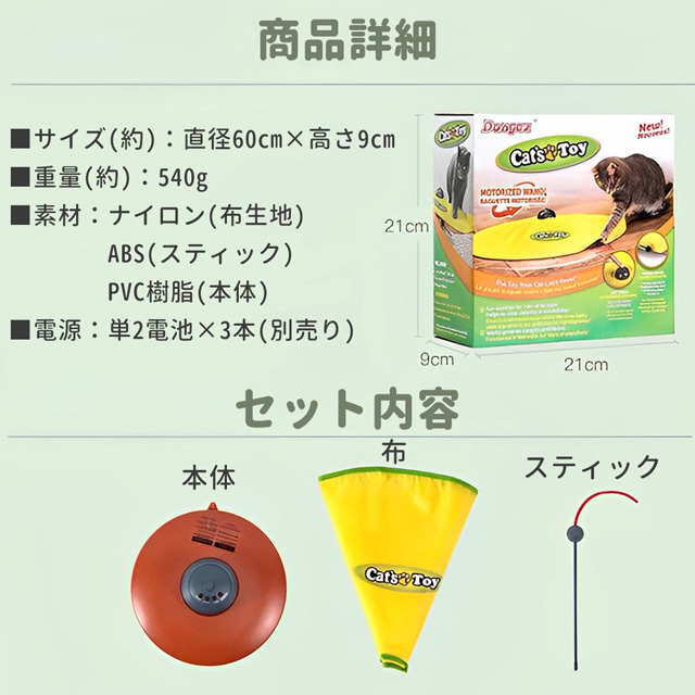 【外して水洗い可能、いつでも清潔】:布は外して洗濯可能なので、よごれたら、すぐ洗えて、綺麗になります。いつでも清潔なままを保て、長持ちできる猫用品、キャットトレーニング、遊び道具です。 ご注意:電池を含まない