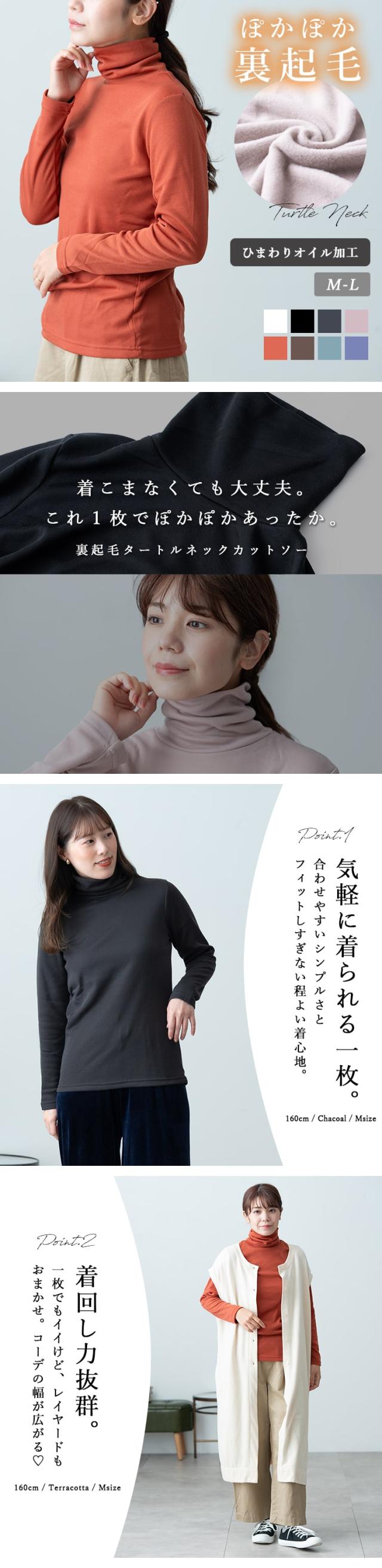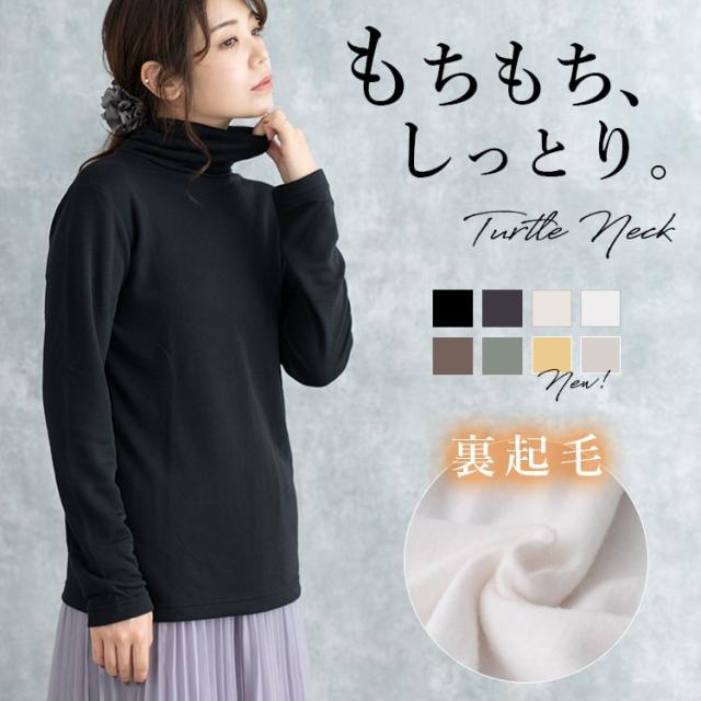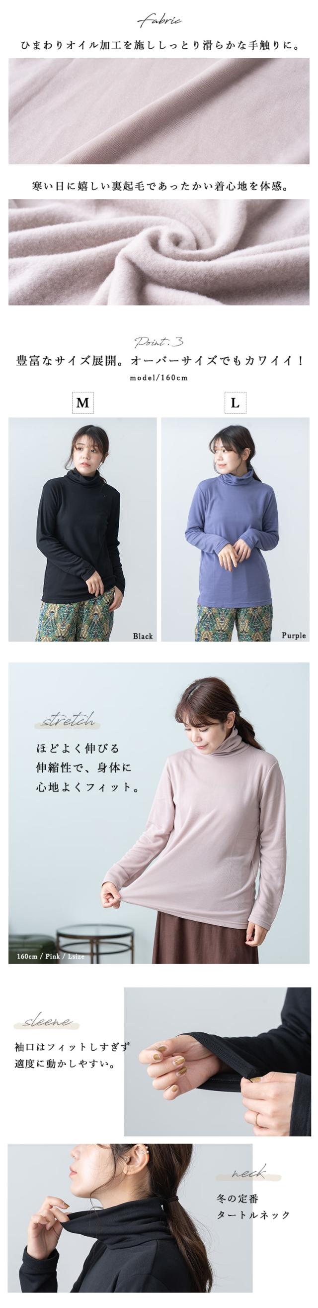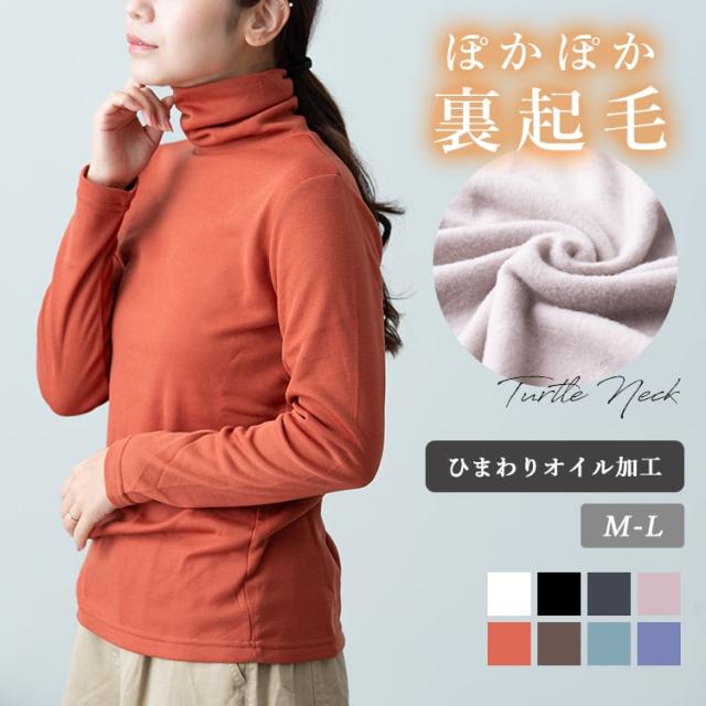 カットソー 長袖 レディース 裏起毛 タートルネック ハイネック しっとり ひまわりオイル加工 tシャツ 暖かい インナー ロンt きれいめ オフィス かわいい おしゃれ 春 秋 冬