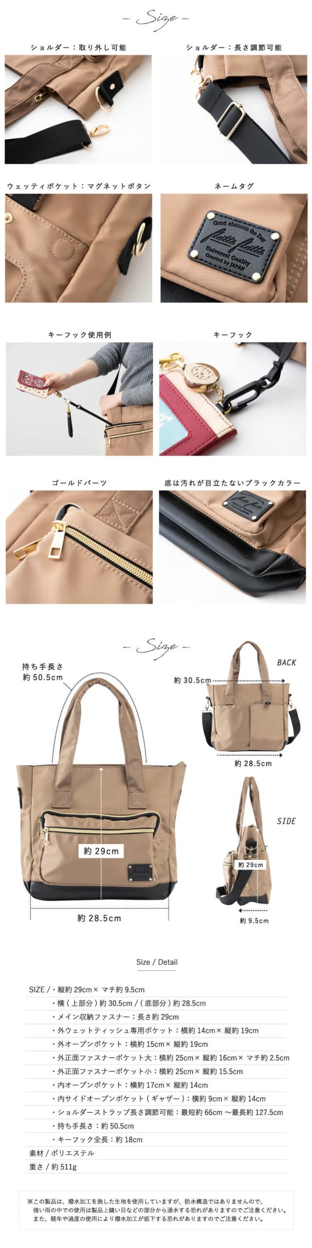 取り外し可能なショルダーストラップ付きの2wayタイプ。
