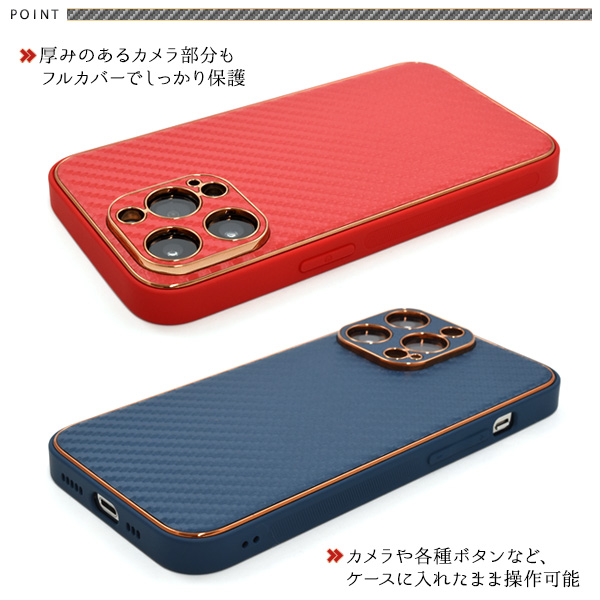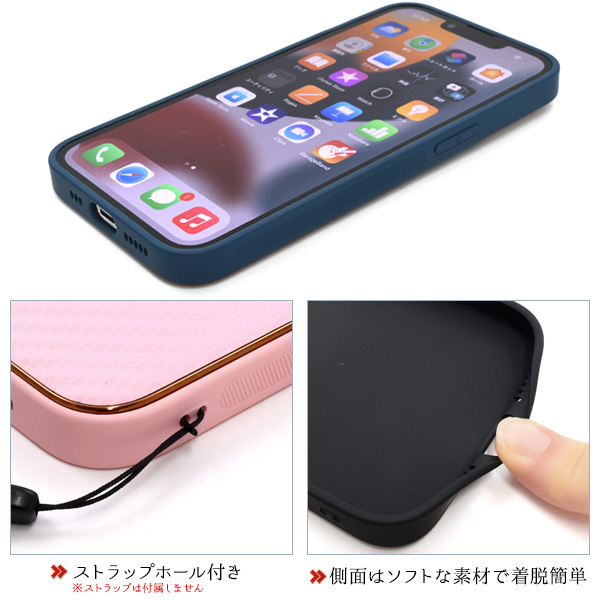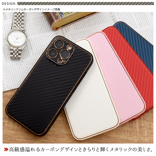 スマホケース iPhone13Pro メタリックリム カーボンデザイン 携帯ケース 装着簡単 背面保護カバー ストラップホール付き シンプル お洒落 オシャレ iPhoneケース 背面保護 携帯カバー 上品 ベーシック カジュアル バックカバー スマホカバー ガーリー SoftBank au docomo