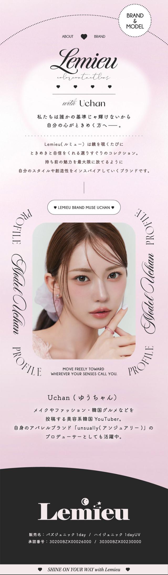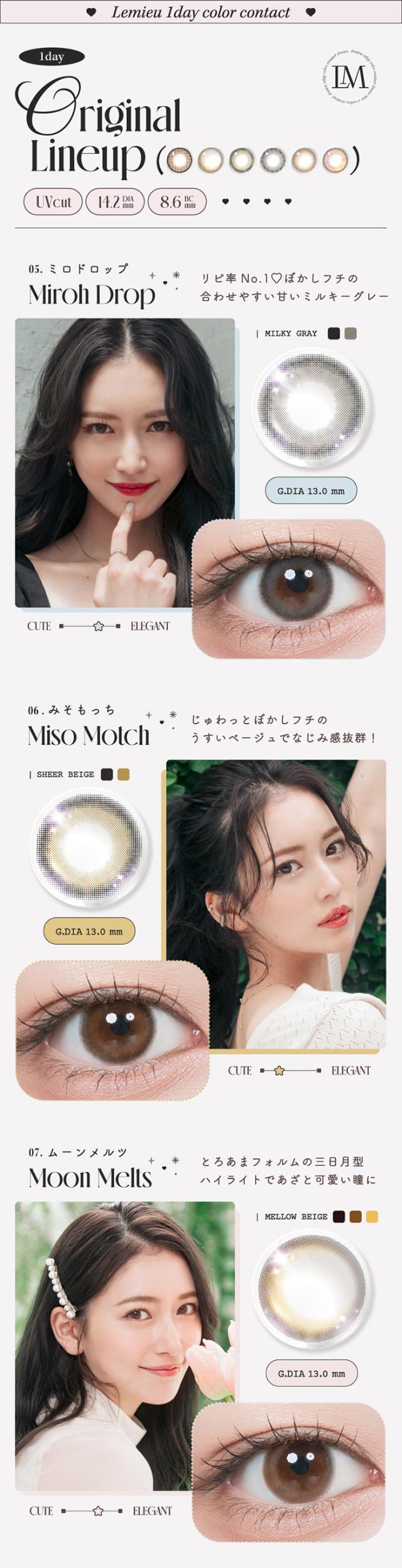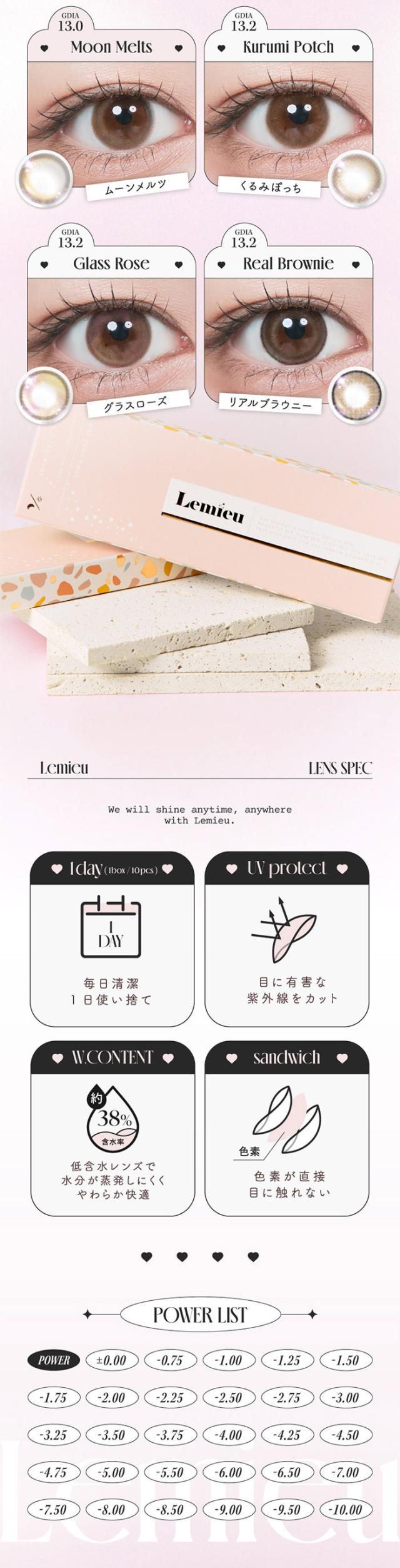 【350円OFFクーポン】カラコン ワンデー 度あり 1箱10枚入り Lemieu ルミュー ゆうちゃん Uchan DIA14.2mm BC8.6 水光感 色素薄い系 韓国 小さめ ナチュラル 自然 細フチ ぼかしフチ フチあり グレー ブラウン ピンク