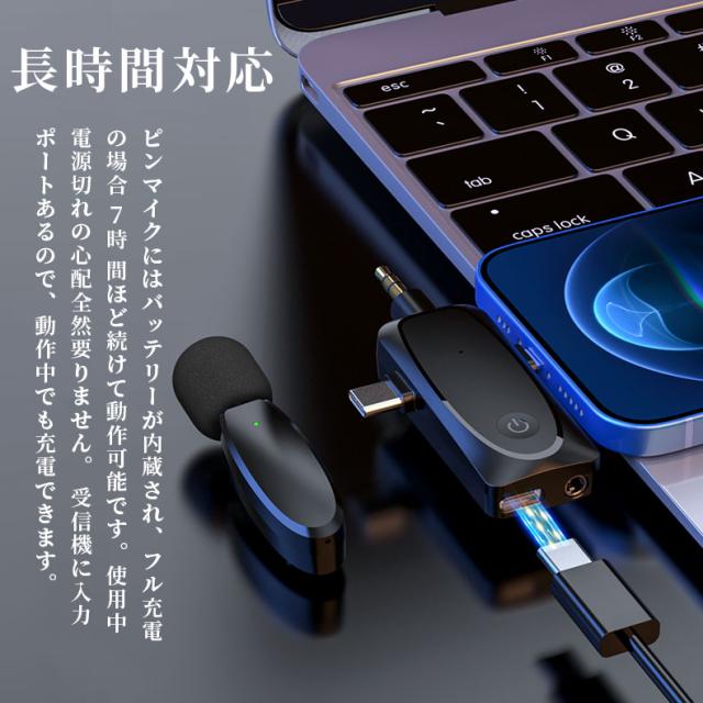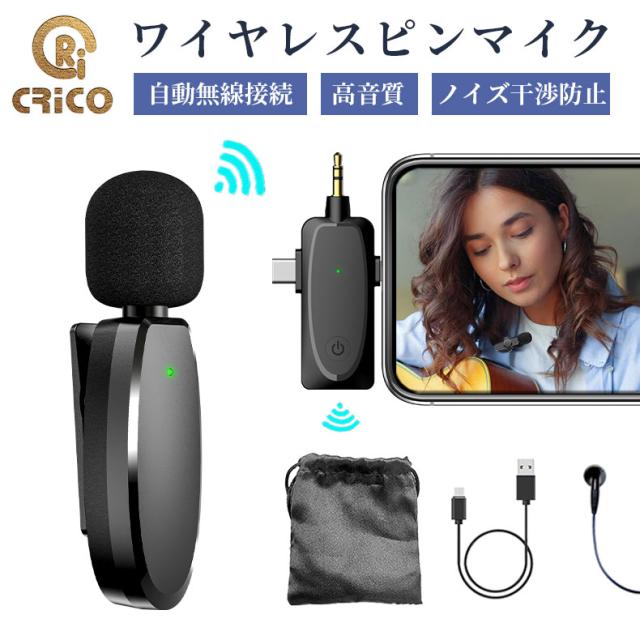 ワイヤレスピンマイク スマホ用マイク ビデオマイク ラベリアマイク APP不要 自動ペア 360°録音 収音 ノイズ低 減充電式 100メートル伝送範囲 高感度 無線 iPad用 iPhone用 外付けマイク 充電式ワイヤレスマイク 動画撮影 Tik Tok、YouTube 生放送 録音Type-C 充電式 軽量 録音 戸外 生放送 Vlog ピンマイク 外付けマイク