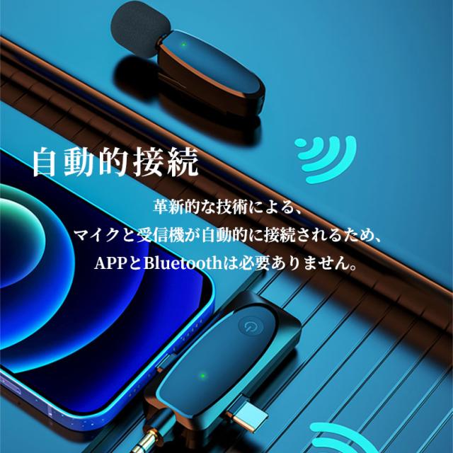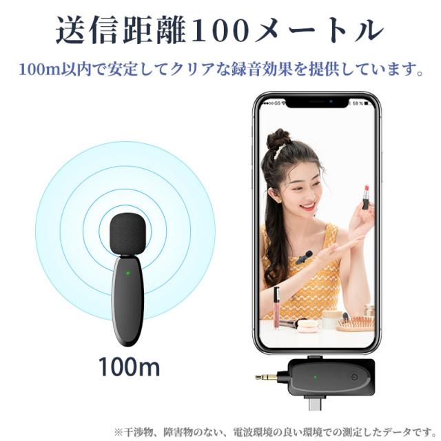 ワイヤレスピンマイク スマホ用マイク ビデオマイク ラベリアマイク APP不要 自動ペア 360°録音 収音 ノイズ低 減充電式 100メートル伝送範囲 高感度 無線 iPad用 iPhone用 外付けマイク 充電式ワイヤレスマイク 動画撮影 Tik Tok、YouTube 生放送 録音